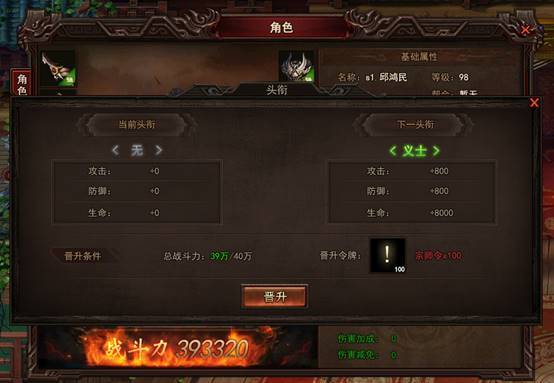头衔晋升之路,见证你的成长:义士-侠客-英雄-宗师……